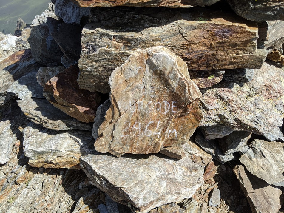 Alors que le groupe de quatre vient de se reformer, je décide de reprendre la route. Plus on monte, plus les sentiers sont constitués de gros rochers et de résiduels d’éboulis. La végétation se raréfie, Je suis à présent à flanc de montagne, sur un chemin constitué de lacets. Je m’y étais perdu en 2018, en suivant des cairns (amas de cailloux disposés par les randonneurs pour baliser l’itinéraire) mal placés. Ça y est, me voilà devant le passage qui m’avait presque fait renoncer en 2018 : « J’étudie toutes les solutions. Ici, le sentier est coupé sur deux mètres. Un rocher, deux ou trois prises, mouillées qui plus est, et en bas, le vide. Mon pied ou ma main glisse, je suis mort. Par beau temps à la limite, mais là, ça ne sert à rien d’insister, je ne le sens pas. »