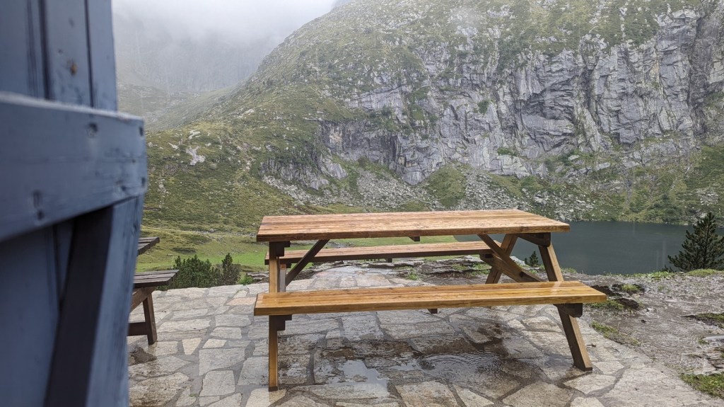 Je croise deux marcheurs qui montent vers Espingo. Probablement un père et son fils. Ils sont impatients d’arriver en haut. Je suis impatient d’arriver en bas. Je ne fais pas le détour pour monter au lac d’Oô. Pas aujourd’hui. C’est bon je l’ai déjà vu mille fois. Oui je suis blasé. Prochaine étape, le parking des Granges d’Astau. Je croise de nombreux randonneurs qui montent voir le lac d’Oô. Qu’est ce qu’il leur prend à tous de faire ça sous la flotte ? Je suis obligé de m’arrêter. Mon sac me fait extrêmement mal aux épaules. C’est insupportable. Il reste un dernier effort. J’aperçois enfin ma voiture. Je dépose mon sac dedans et sans prendre le temps de me changer, je vais au restaurant d’en face, le Mailh d’Astau. La pluie s’est arrêtée. Je demande s’il n’est pas trop tard pour un sandwiche et si je peux m’installer en terrasse. Le serveur attrape un torchon pour essuyer l’eau sur la table et sur ma chaise. Un coca, un sandwiche au jambon de pays et une crêpe au sucre. Ça ressemble enfin à des vacances. Je dresse le bilan. Il est le même qu’en 2018. La montagne n’a encore pas voulu de moi et déjà, l’envie d’aller chatouiller les 3000 se fait plus pressante que jamais. Je vais étudier ça mais il va falloir que ça se fasse en 2023…