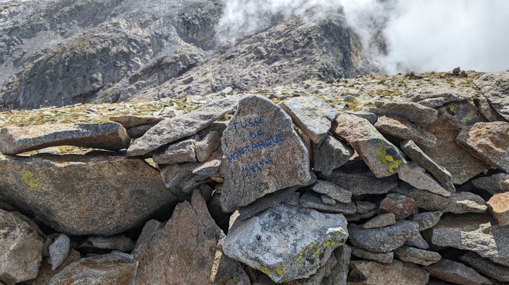 Je suis secoué pendant plus de deux heures. Le vent s’est-il arrêté ? Le sommeil a-t-il eu raison de moi ? Je suis réveillé à 6h30 par mon téléphone. Le vent s’est bien arrêté de souffler. Je me dépêche d’ouvrir ma tente. Le jour commence à se lever. Les nuages sont revenus. Pas les nuages blancs de la veille. Des nuages gris qui n’augurent rien de bon. Je m’habille et rejoins l’accès qui mène vers le pic Gourdon. Je distingue l’itinéraire qui mène au pic. Il faut compter deux heures depuis la Tusse. Mais le temps semble très mauvais. Je ne vais quand même pas devoir laisser tomber l’ascension du 3000. Je suis venu pour ça. Pour enfin le cocher dans ma bucket list. Afin d’alléger considérablement mon sac, j’avais prévu de laisser ma tente et mon sac de couchage sur la Tusse. Avec la nuit que je viens de passer, elle a l’air solidement ancrée. Mon sac léger sur les épaules, je traverse de nouveau la Tusse pour rejoindre le point de départ. Le vent se lève de nouveau et les nuages semblent avoir élu domicile entre mon bivouac et le pic Gourdon. Je ne veux pas revivre une randonnée similaire à celle de 2018. Un vent qui bastonne en pleine ascension d’un pic, une pluie qui ruisselle sur la roche, le ciel annonce un scénario catastrophe. Je dois me fier à mon intuition. S’il ne pleut pas encore, je sens que ça finira par tomber. Demi tour. Dépité, je charge la tente dans mon sac pour regagner le Portillon. Je prendrai le petit déjeuner là bas. Si on me fait le même chocolat chaud qu’en 2018, ça sera toujours ça de gagné.