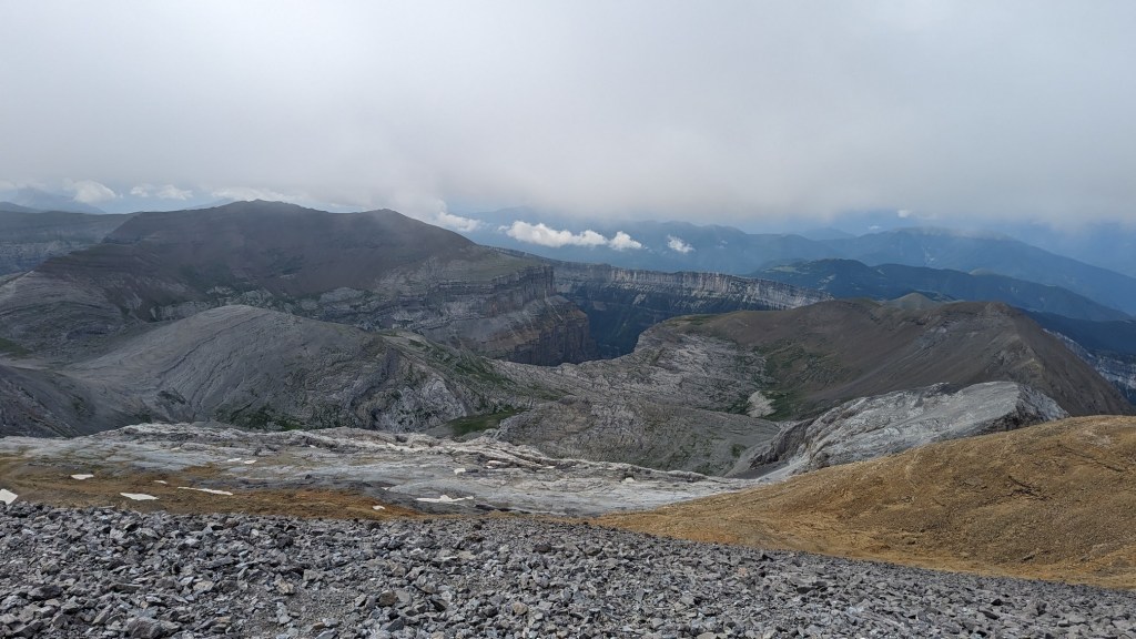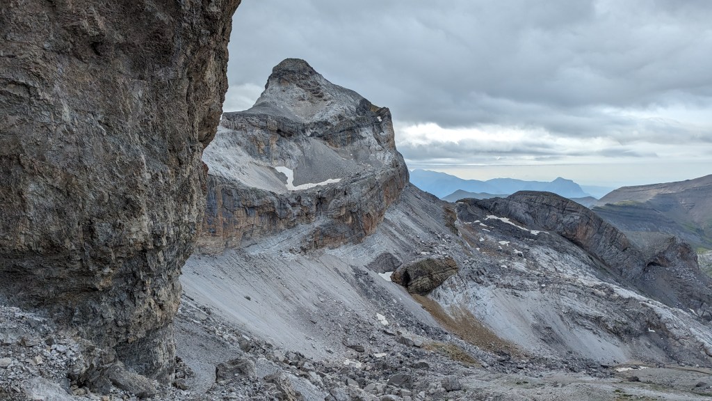 Il se trouve que depuis l’arrête sommitale du Taillon, il est possible de rejoindre les pics Gabietous. Le Gabietous Oriental, 3031m et le Gabietous Occidental, 3034m. Je décide donc, la veille de mon départ, de rajouter ces deux pics à mon excursion, pour une journée qui devrait osciller entre dix et douze heures de marches. Alors tout ça, c’est bien beau, mais si j’apprends bien à repérer les Gabietous depuis le pic du Taillon, il semble que je ne prenne pas trop la peine d’en étudier le parcours… Légère omission qui, quoi qu’il en soit, ne changera finalement pas grand chose à mon excursion.