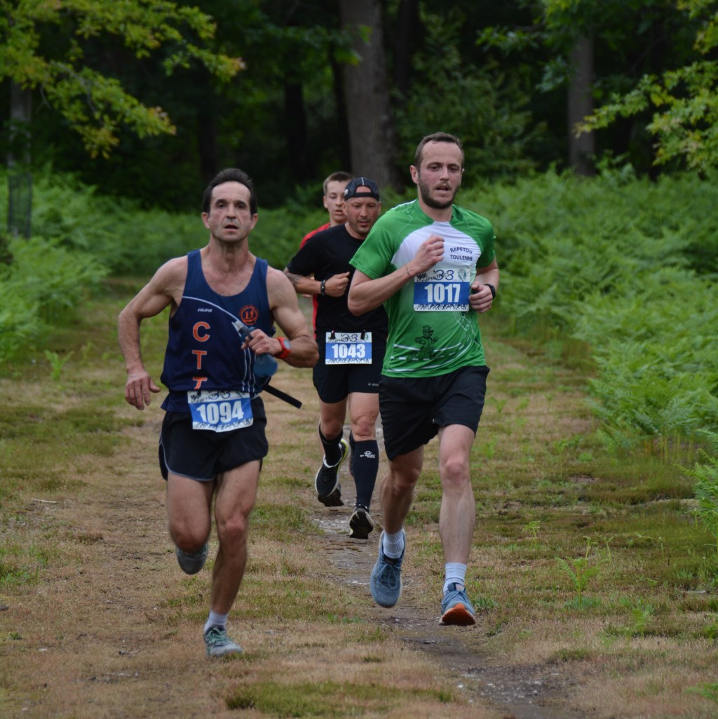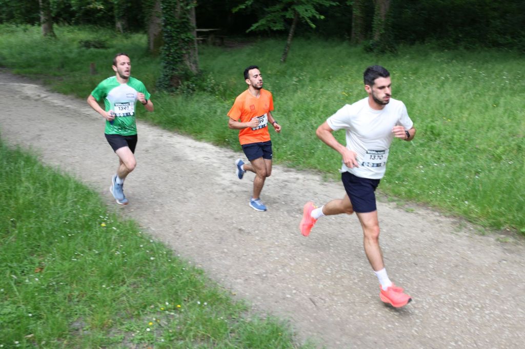 Je pars m’échauffer avec deux Olivier, et je les laisse pour pisser un coup. Evidemment, je n’y arrive pas. A mon retour, nous faisons la photo du club et je conviens avec Aubin, de l’endroit où il peut se mettre afin que je lui fasse un check. Il est 10h, top départ. Nous sommes 253 partants. 108 pour le 5km et 145 pour le 10. Je me tiens dans le premier quart. Je me laisse très rapidement embarquer dans un rythme infernal. Si je ne ralentis pas tout de suite, je ne vais pas tenir l’allure. La cavale est un parcours route et chemin. Si l’allure est plus soutenue sur le bitume, la terre est plus imprévisible. Heureusement, nous venons d’avoir deux jours de Soleil qui ont rendu le parcours parfait. Je vois bien sur ma montre que les deux premiers kilomètres sont trop rapides. 4’11 et 4’17/km. Je ralentis, mais 4’31 au troisième kilomètre, c’est trop lent. Ca passe pour être sous les 46min mais pas les 45. Et se mettre dans un faux rythme est dangereux. Alors que je pense mettre juste un petit coup d’accélérateur, me revoilà à 4’11 au quatrième kilomètre.. Décidément, je ne parviens pas à trouver mon rythme, je m’agace. Je réfléchis.
