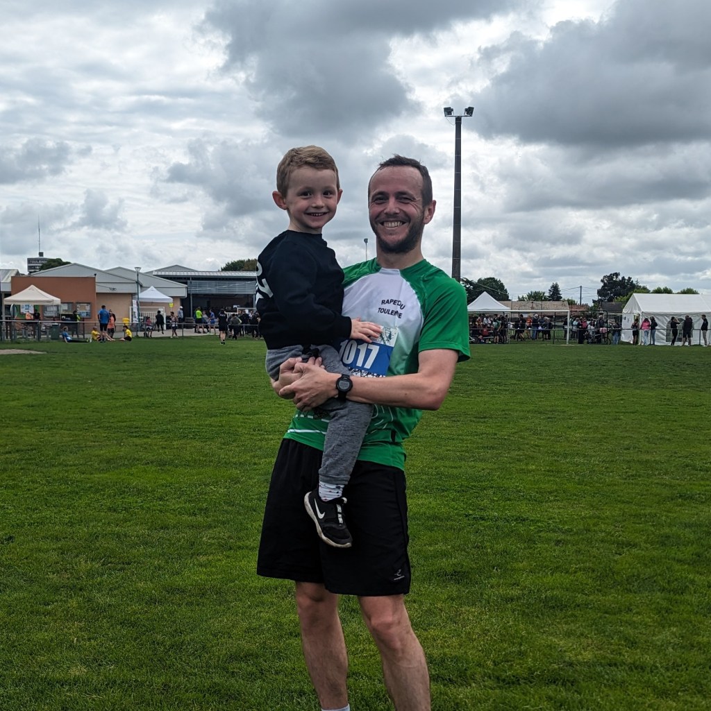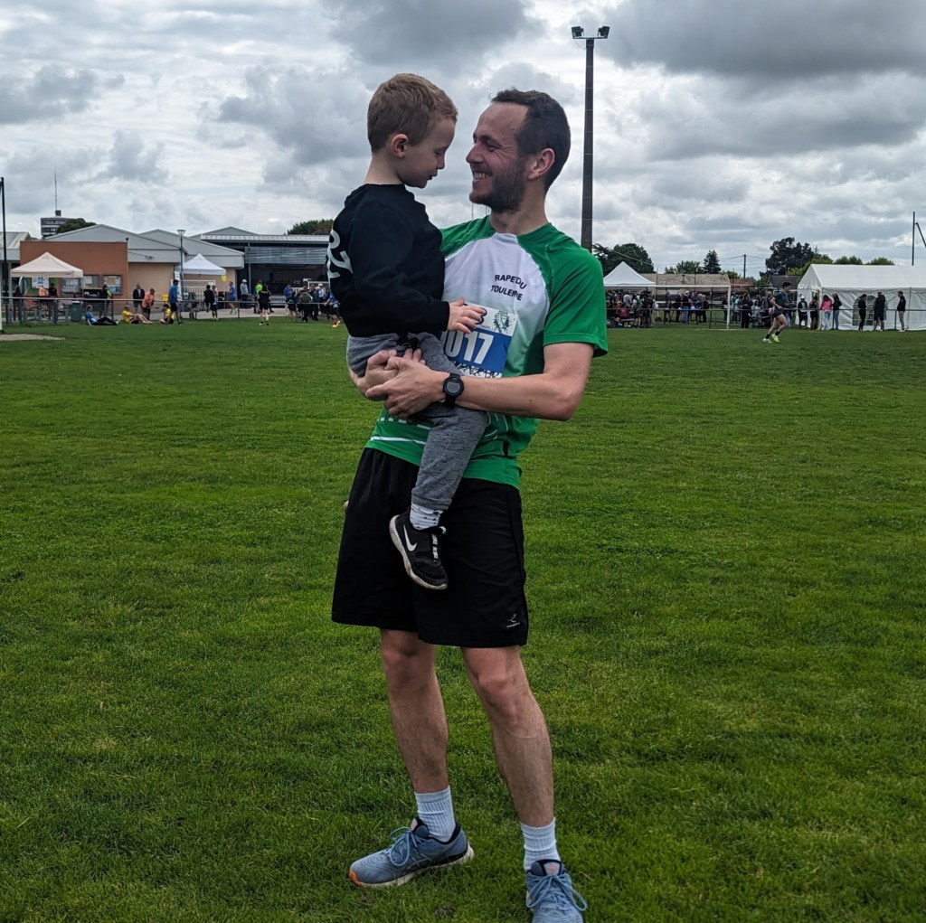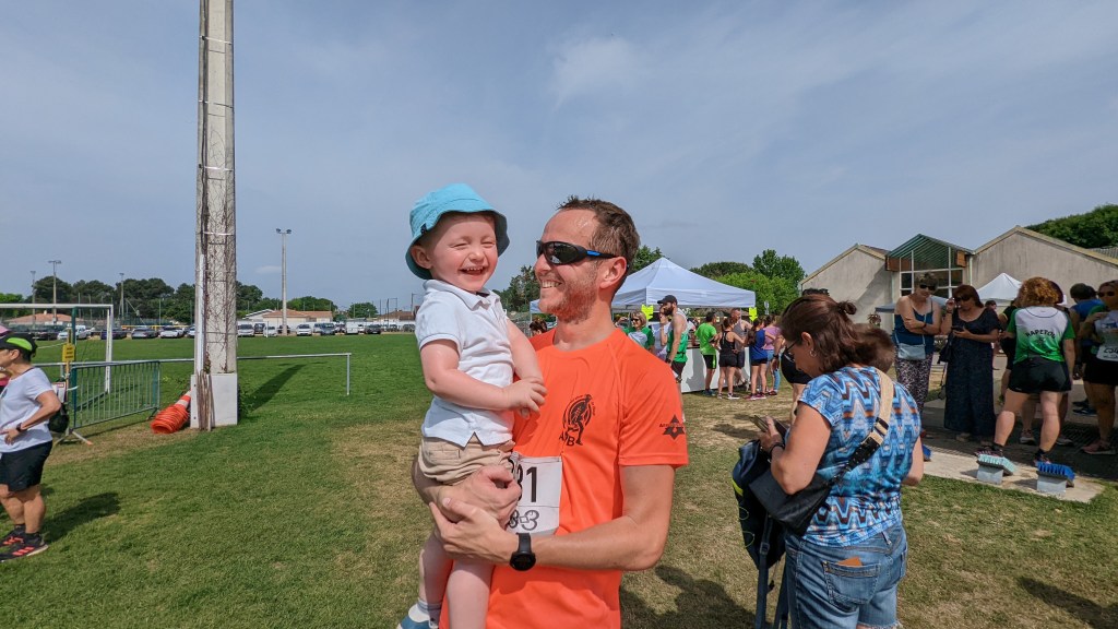 26 mai 2024. C’est jour de Cavale. Le réveil est difficile pour moi, mais aussi pour Aubin. Le stress m’a privé d’une partie de ma nuit de sommeil. Il est pas loin de 9h15 quand nous arrivons sur le lieu de la course. Anaïs, la maman d’Aubin est venue pour le garder le temps de la cavale. Il y a trois épreuves pour les adultes. La randonnée, le 5km et le 10. Le 10 fait deux fois la boucle du 5. Le 17 mai, nous avons fait l’entraînement sur ce parcours, et Jérémie, le président de l’association du club, m’a donné quelques précieux conseils. Il connait ça par cœur.