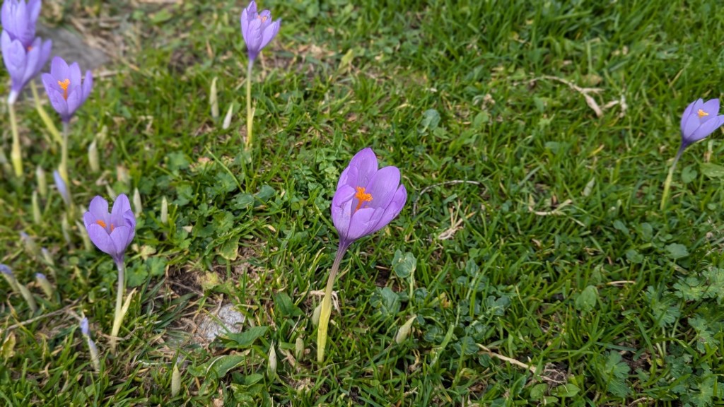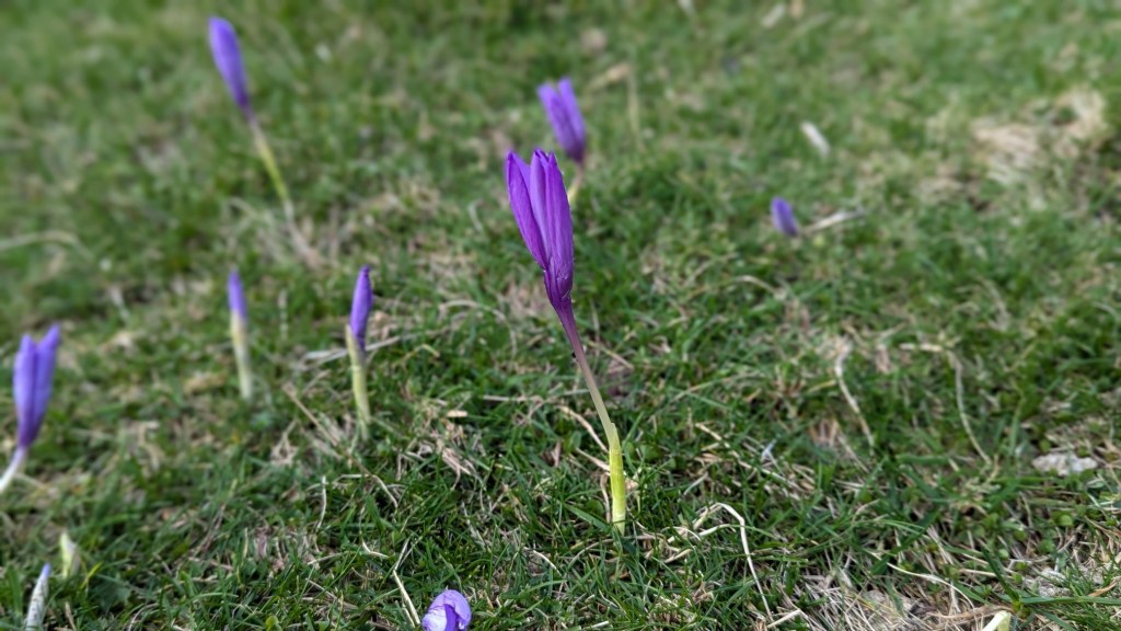 Nous nous élevons dans la forêt qui domine le plateau. Parti devant, je réalise au bout de deux minutes que nous n’avançons pas au même tempo. Tant pis, je vais continuer seul. Déjà, je suis en pleine forme, je trouve immédiatement ma cadence et j’avance très vite. Pour le pic et la Table aller retour, il faut compter 7 heures. Je sais que je descends lentement et qu’en octobre, les jours sont plus courts. Toute avance est bonne à prendre. Je quitte la forêt humide pour traverser une clairière. Le couple a disparu. Pour l’instant c’est très facile de se repérer. Il y a, tous les 30, 40 mètres, la marque du GRT13. Sur un rocher ou sur un arbre, je dois la suivre jusqu’aux sources de Marmitou. Je passe au dessus de la cabane d’Anaye. Ici, cabane se dit cayolar. Je ne fais pas le détour. Il est 8h52. La pente est moins raide que dans la forêt, mais quand même… Alors que j’arrive bientôt au cirque d’Anaye, je traverse un champ de crocus. Je n’ai jamais vu ça. Les fleurs violettes ont pris possession de la plaine. C’est magnifique. Je n’ai encore rien vu. Je pose mon sac pour boire quelques gorgées d’eau. En course à pied ou en randonnée, j’ai découvert que mâcher un chewing gum recycle la salive et diminue la sensation de soif. Si je n’ai pas soif, j’ai tout de même besoin de m’hydrater. Je garde un mauvais souvenir des Spijeoles sur ce sujet… Je vois au loin, le couple qui arrive au cayolar. Je reprends mon ascension.
