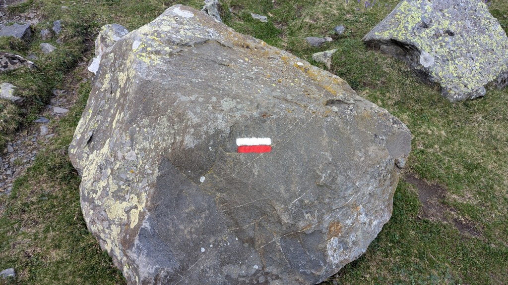 A quelques mètres du pont, je prends le temps de récupérer, de retrouver mes esprits. J’attrape mes notes, je regarde ma boussole, le paysage. Merde, il fallait bien traverser ce pont. J’ai voulu revenir au col pour reprendre à zéro mais je ne m’étais trompé qu’à moitié. Si je n’y vais pas d’un pas sûr, ça va le faire. De nouveau, je me dirige vers la gauche. Gauche centre on va dire. Sur un rocher cairné, je prends le temps de réfléchir. Le problème, c’est que l’orientation et moi ça fait trois. J’ai la chance de me connaître, et je sais que si je continue, je serai incapable de retrouver ma route, c’est une certitude. Alors que je n’ai déjà plus envie d’atteindre mon objectif, jusqu’où je suis prêt à aller pour seulement monter sur un caillou ? C’est déraisonnable. Ca fait dix minutes que j’ai quitté le pont et je suis clairement incapable de repérer le col des Ourtets. J’y étais pourtant il y a une demi-heure. Comment ça va se passer dans trois heures, quand il sera temps de revenir ? Ma montre vibre. 4G ! J’ai la 4G !!! J’attrape mon téléphone pour ouvrir l’itinéraire de Mariano. Je ne suis pas au bon endroit. Et puis j’ai perdu trop de temps. Je vais suivre l’itinéraire de Mariano pour retourner au col et j’irai pique niquer dans le cirque d’Anaye. Terminé. L’idée de passer le reste de la journée dans mon nouveau plus bel endroit du monde est quand même réjouissante. Ca fait 10 minutes que je n’ai pas bougé. Je lève les yeux. Une jeune femme est sur l’itinéraire de Mariano. Avec son sac rouge, elle avance d’un pas sûr tout en prenant le temps de réfléchir à chaque étape.