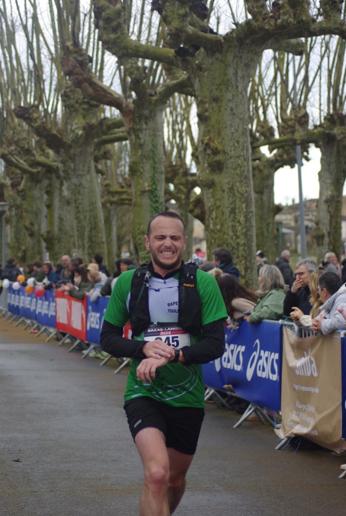 Le Bazas-Langon 2025 sera mon quatrième semi. Et mes 3 premiers semi-marathons, ce ne sont que des Bazas-Langon. En 2020, je bouclais donc mon premier Bazas-Langon en 1h42min28s. Quelques jours après, nous étions confinés. En 2021, bah Covid, pas de semi. Pas de semi, pas de semi. En 2022, au milieu des nombreux maillots blancs et verts des Rapetou, que je ne connais que de notoriété, je termine mon deuxième semi en 1h39min26s. En 2023, portant fièrement le maillot des Rapetou, je finis mon 3ème Bazas-Langon en 1h35min30s, soit 30 secondes au dessus de mon objectif initial. En 2024, à mon grand désespoir, la course ne s’est pas tenue. Cette année, parce que j’espère être encore capable de progresser, je dépoussière mon vieil objectif de 2023 et je vais tout faire pour aller chercher ces trente secondes et passer sous la barre des 1H35 (émoji doigts croisés, émoji doigts croisés, émoji doigts croisés).