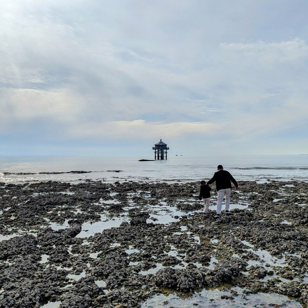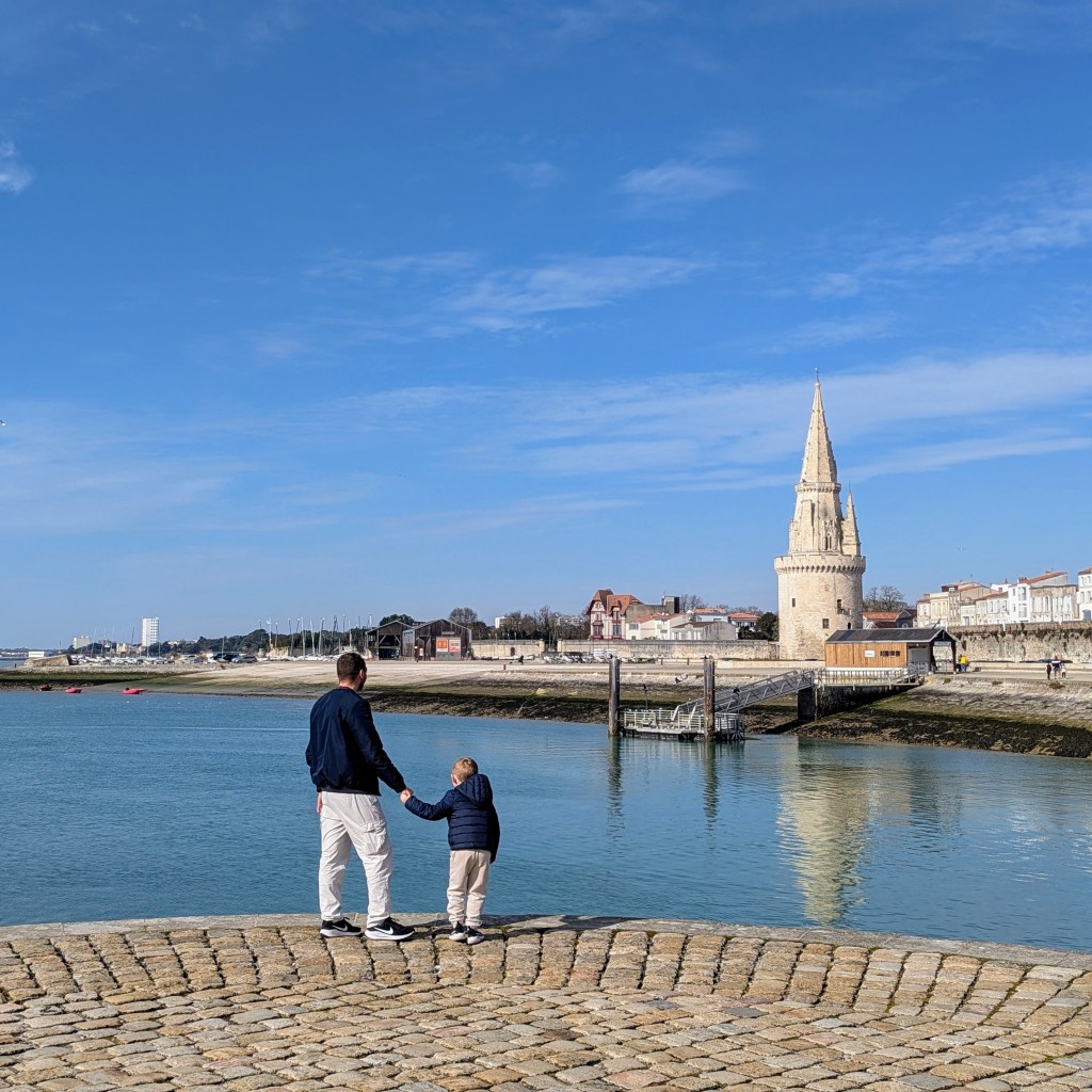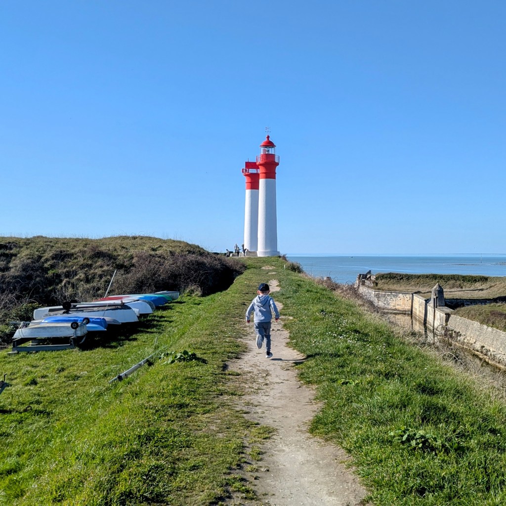 Mardi 4, Aubin a super bien dormi… Direction l’aquarium de La Rochelle avant la visite du Vieux Port. Restaurant en face de l’Hôtel de ville, fin de la visite du vieux port, un p’tit tour de grande roue, ah, et un autre, et encore un autre, et enfin un dernier avant de prendre la direction du port des Minimes. Je rêvais de voir le Phare du Bout du Monde. Magnifique mais loin. Allez, on va traverser la plage. Encore un peu loin… Marée basse, on peut longer la pointe des Minimes pour s’approcher un peu… Ah enfin, là ça ressemble à quelque chose. Et si, en esquivant l’eau, on tentait de s’approcher au plus prés… Voilà, là c’est parfait. On pourrait presque toucher le phare du bout des doigts.