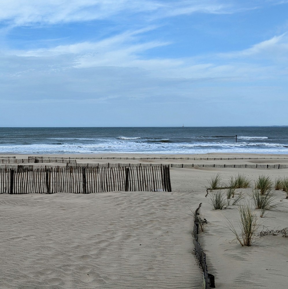Un peu dépités, nous nous sommes réfugiés à Soulac — et c’était une excellente surprise. La ville nous a immédiatement rappelé Arcachon, avec sa balade paisible en bord d’océan, son atmosphère tranquille et ses maisons aux allures parfois singulières, entre villas balnéaires et bâtisses anciennes.