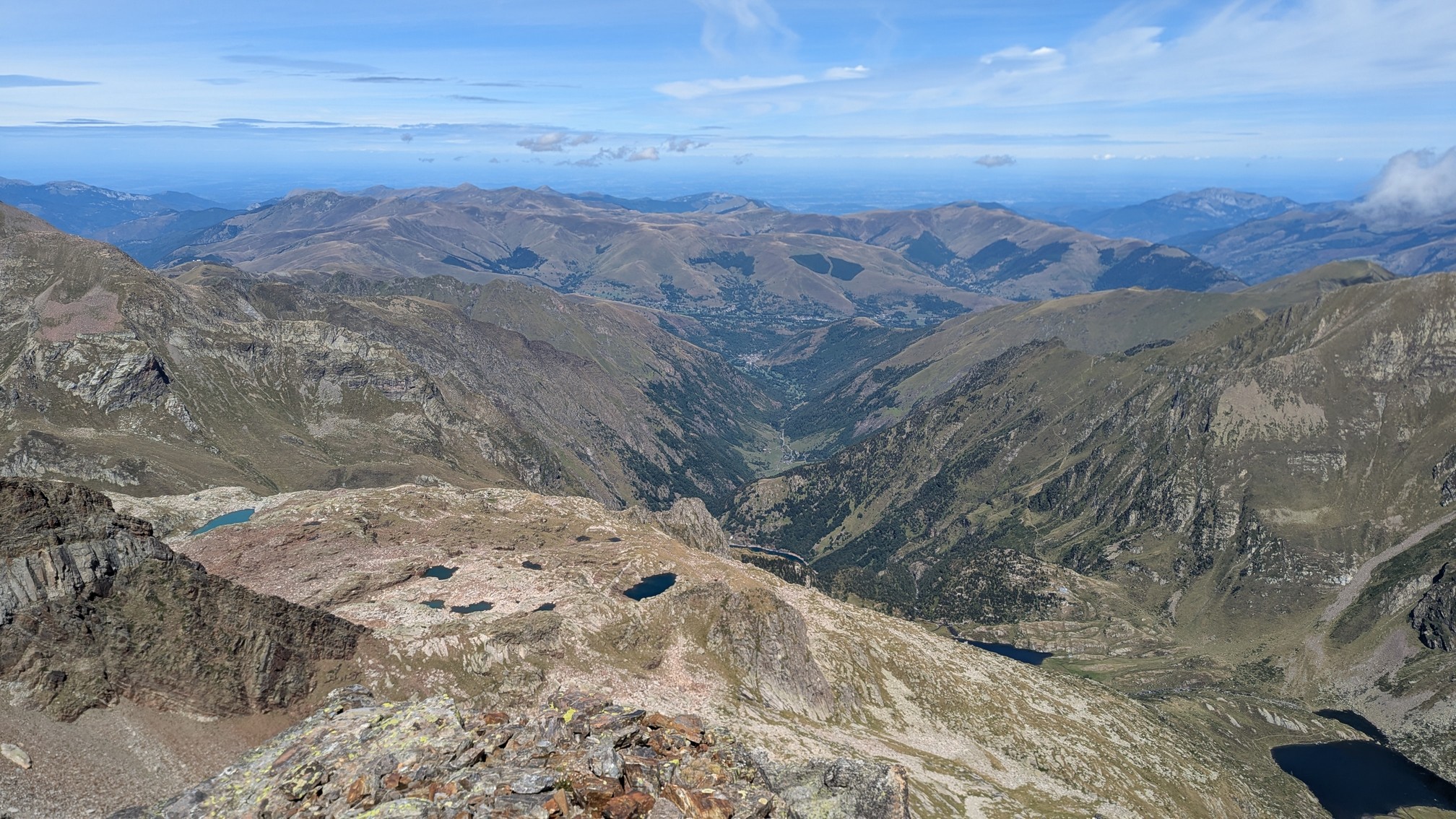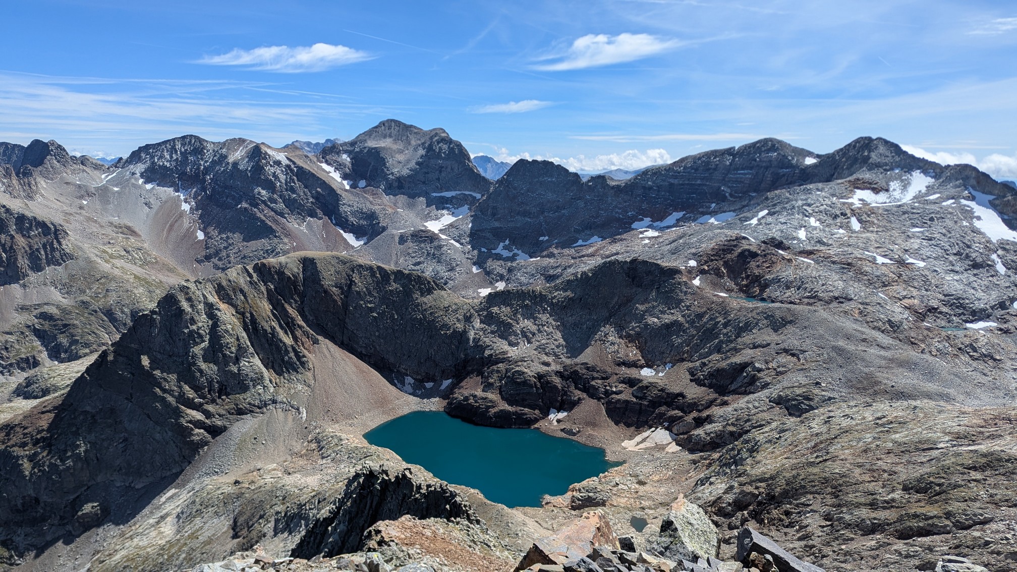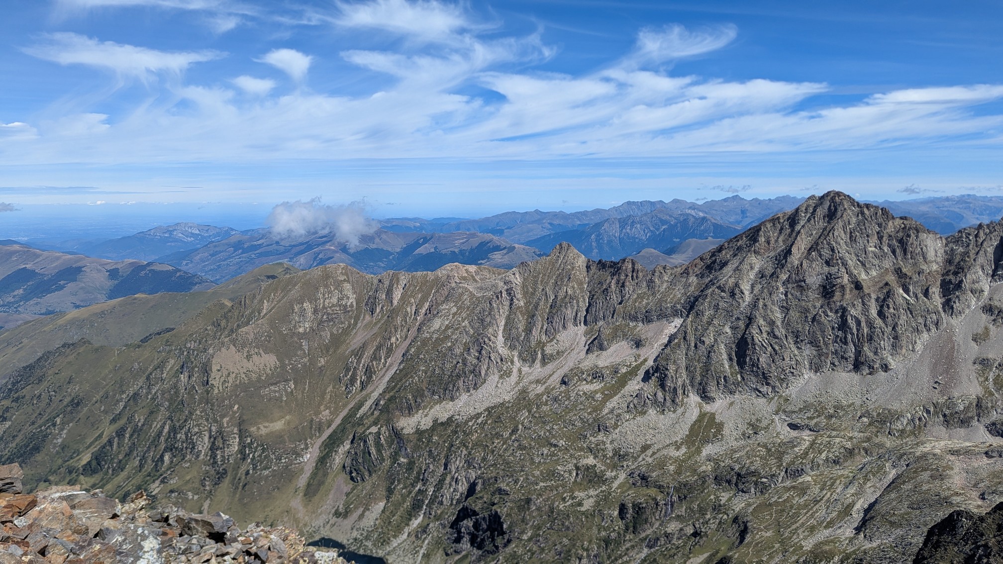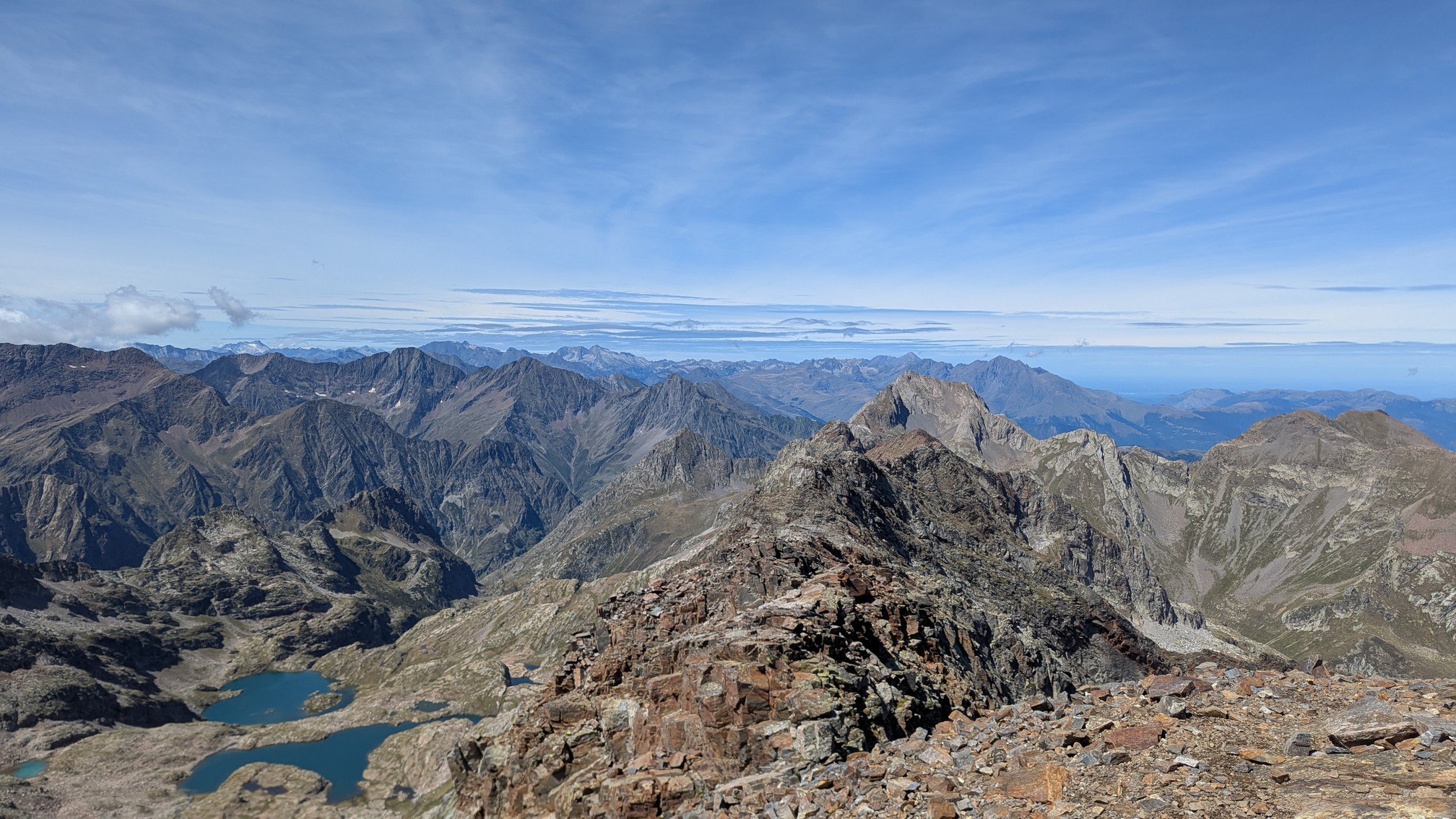 Nous restons longtemps sur le pic, une heure peut-être, seuls au monde. Profitant de la chaleur du Soleil. Je remercie Loïc à qui je dois cette victoire. Du malaise lors de l’ascension, aucun malaise au sommet. Je me souviens alors que sur le pic du Néouvielle, je ne pouvais pas regarder autour. Et pourtant je n’étais pas seul non plus. Est-ce que je vais pouvoir changer de catégorie ? Faire prochainement l’ascension du toit des Pyrénées ? Le pic de l’Aneto avec son vertigineux pas de Mahomet… Et pourquoi pas réenvisager… Le Mont Blanc ? Aujourd’hui, au-dessus de l’endroit que je préfère au monde, à 3065 mètres, tout devient possible…