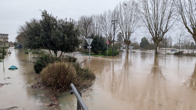 Le 12 février, la tempête Nils fait des ravages et, après plus d’un mois de pluie ininterrompue, la Garonne déborde. Le dimanche 15 février, l’eau commence à monter dans ma rue. Je demande à la mère d’Aubin de venir le chercher le plus vite possible. Je prépare ses affaires et mes valises. On évacue Aubin en début d’après-midi. On traverse le pont de l’Œuille en bottes. Il est fermé à la circulation depuis à peine une heure. Je retourne chez moi récupérer mes valises. La télé est allumée. C’est le biathlon. Je m’assois cinq minutes. Bon, allez… je peux bien prendre le temps de regarder la compétition. Je redescends dans ma rue avec mes valises. L’eau est encore montée. Je remonte chez moi. Flemme de partir. Et puis c’est l’heure du ski de fond. Je redescends, sans mes valises. L’eau monte encore. Mais franchement, si ça ne monte pas plus vite, je ne vois aucune raison de m’affoler. Je croise le maire, qui discute avec les habitants. Je tends l’oreille. De ce que je comprends, ça n’arrivera pas jusqu’à ma porte. Bon… Et puis ce soir, il y a le patinage artistique… Je reste. C’est acté.